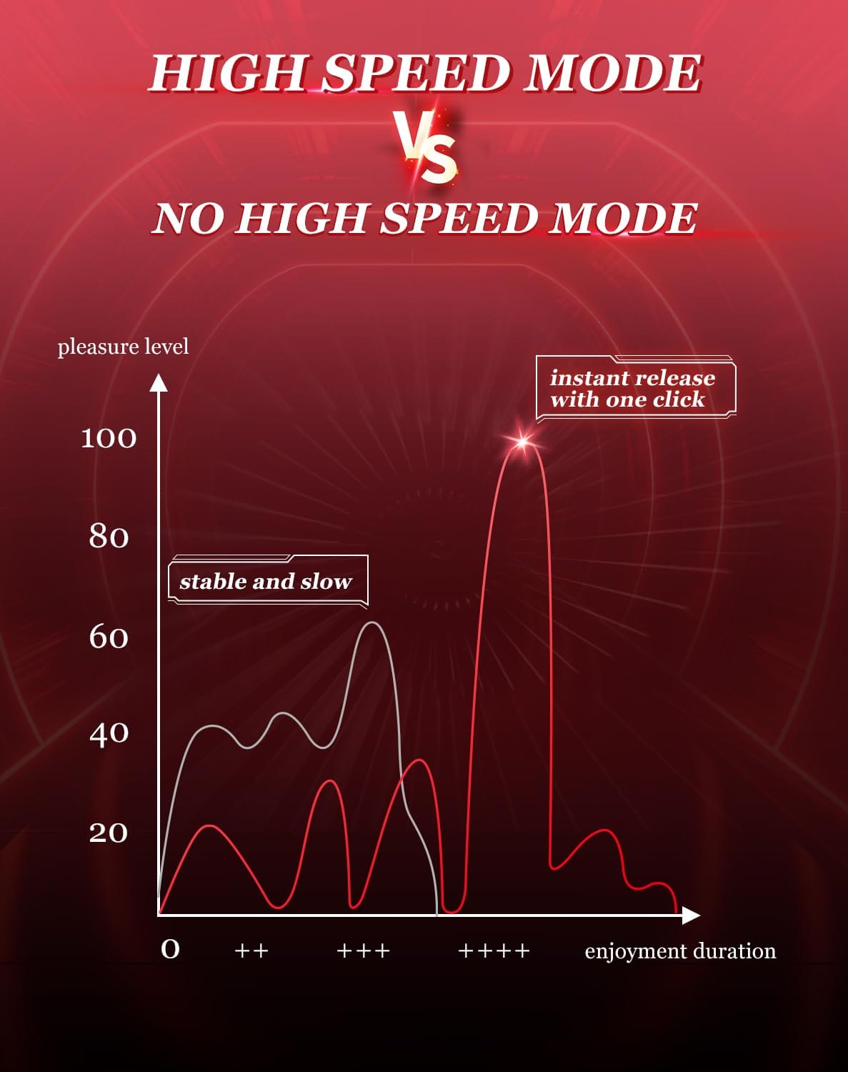【Ultra-High-Speed Mode】 Take your pleasure to the next level with our ultra-high-speed mode. This feature will send waves of intense vibrations pulsating through your body, delivering unparalleled sensations and pushing your boundaries of ecstasy. Get ready to experience pleasure at a whole new velocity.