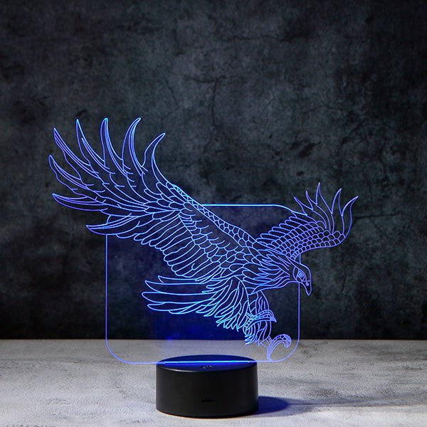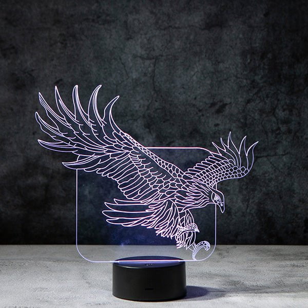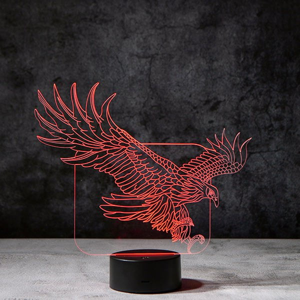 This playful eagle lamp combines man made fibers with natural materials and produced using both machines and artisan handwork. Perfect for displaying in your bedroom, living room, office, as a night light, table lamp or any way you want to use it.