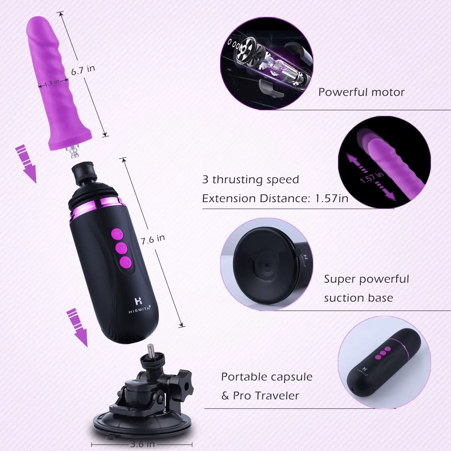 Hismith Capsule designed to make all your bedroom fantasies come true, with 370 RPM thrusting motor & and 1.18” stroke length., besides, Hismith Capsule has 3 thrusting speeds for choice, what’s more, Capsule has unique power boost climax mode, help you get fast climax when you find your point.Rechargeable: Lasts for 60 minutes after 2 hours charging, enjoy the pleasure anytime, anywhere and say goodbye -to the troubles of messy cords.